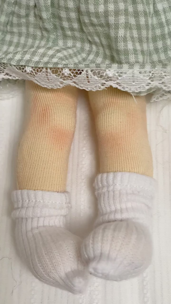 Waldorf doll, little girl in green dress