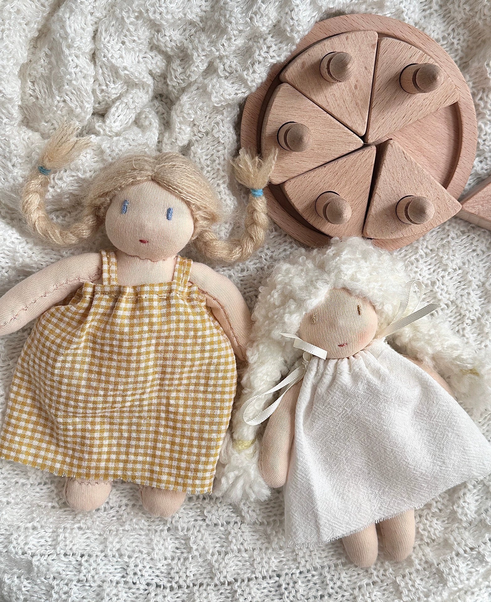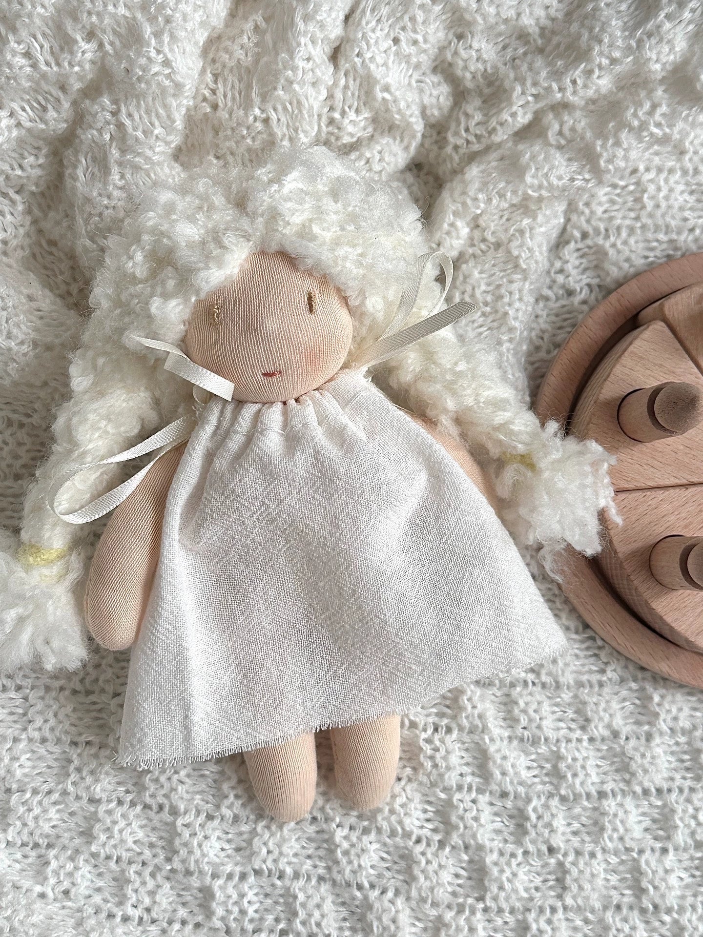 Waldorf doll, little girl in white dress, soothing doll, handmade fabric baby, handmade